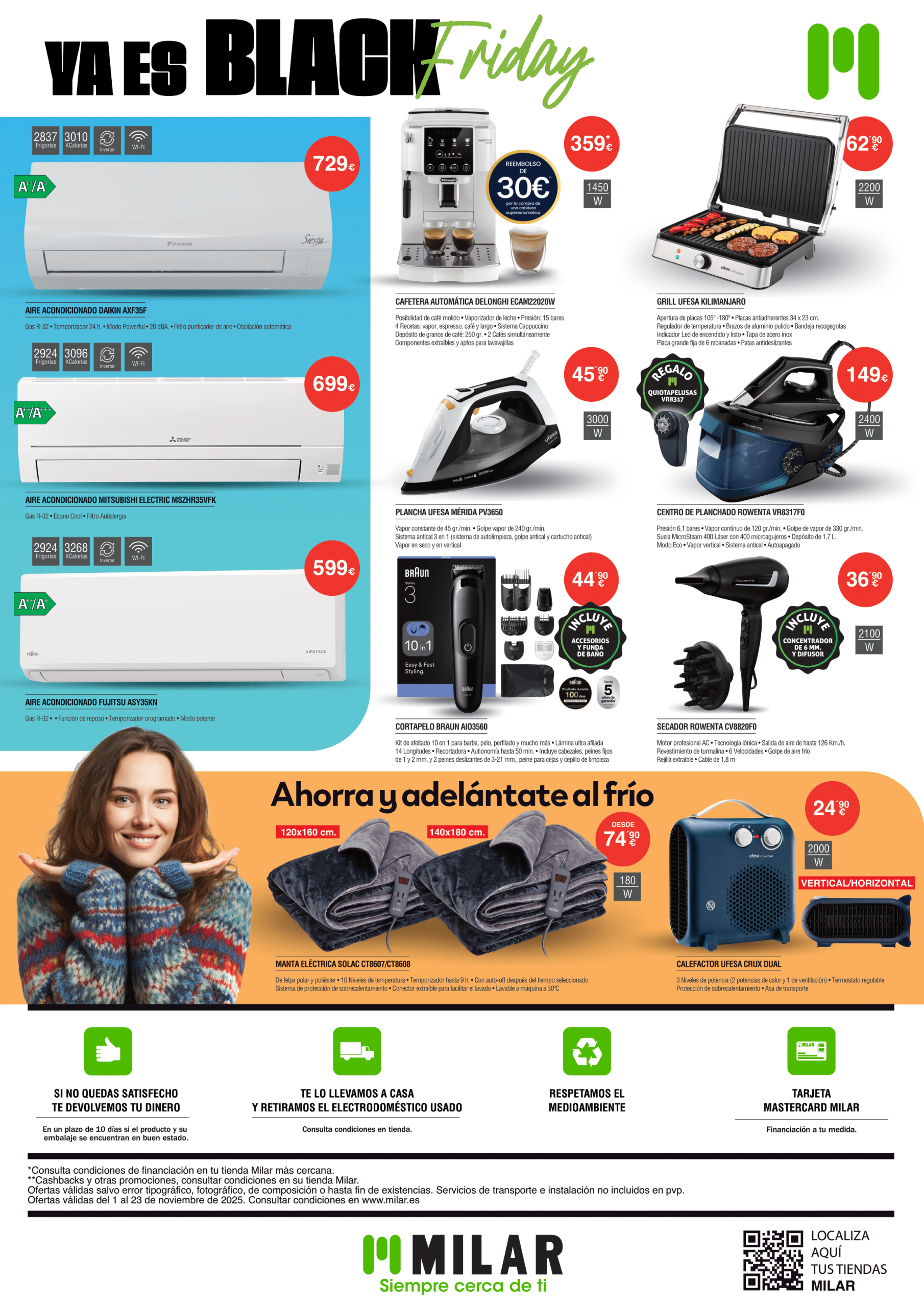 **CashBacks y otras promociones, consultar condiciones en su tienda Milar y en la página web de milar.es